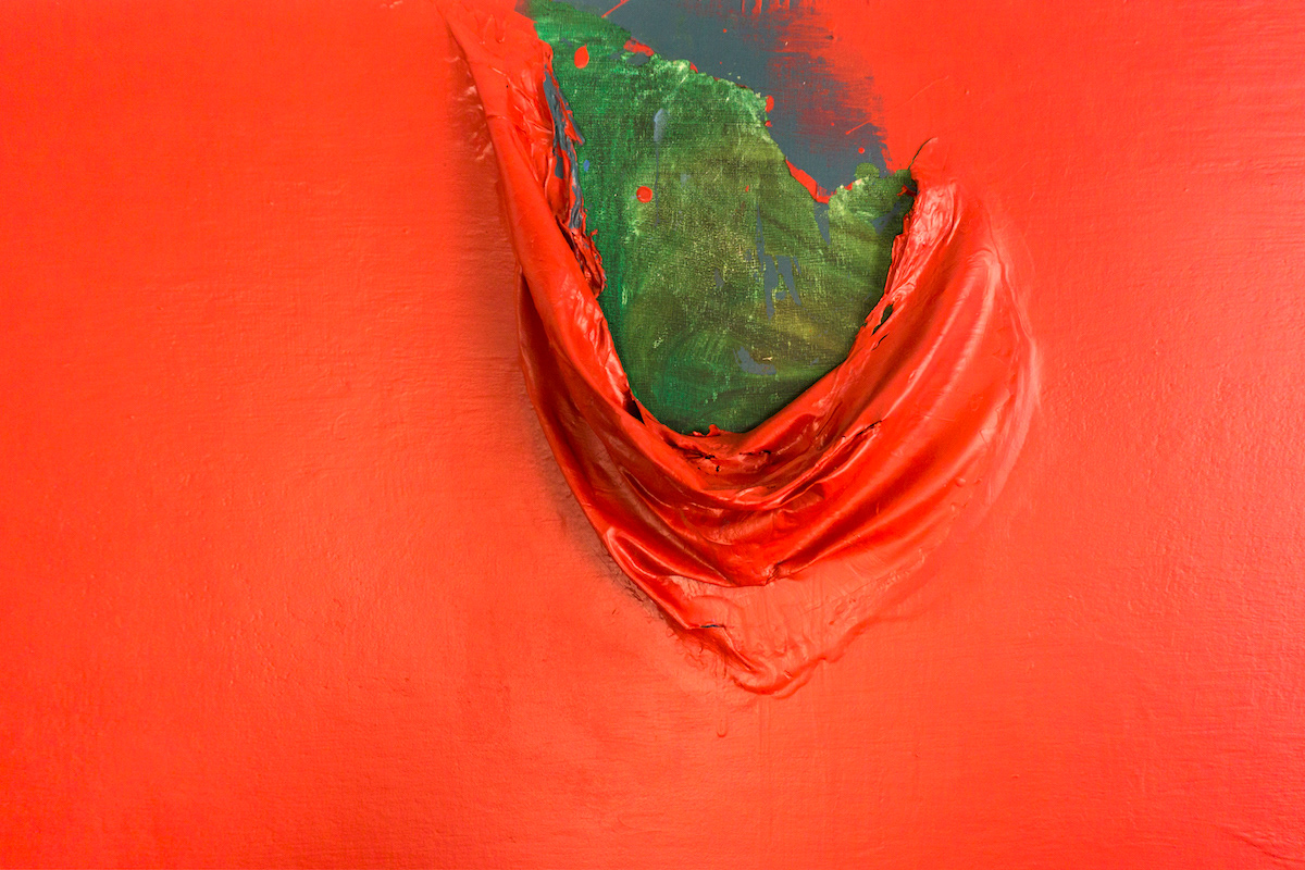 latex house paint and acrylic on wooden panel.